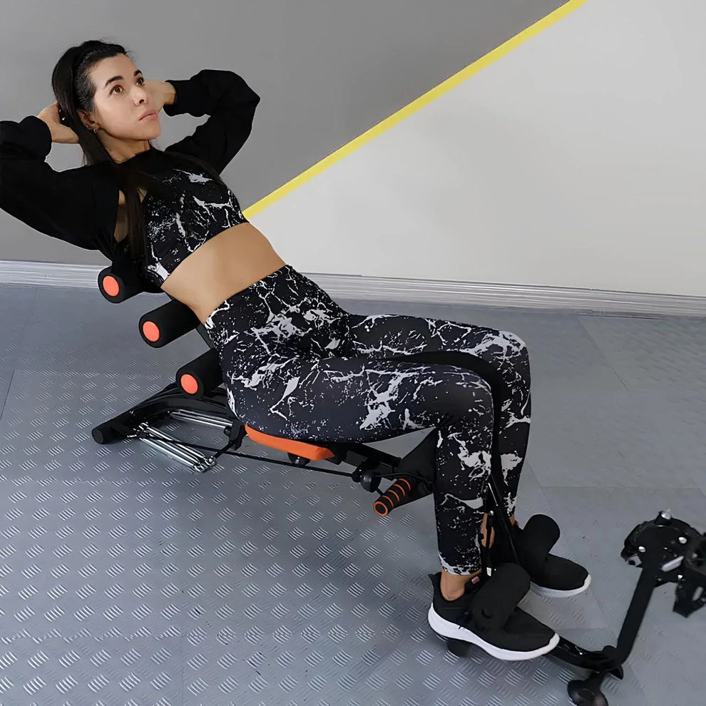Ce dispositif polyvalent propose une gamme d’exercices incluant crunchs abdominaux, torsions obliques, extensions du dos, pompes, pressions thoraciques, élévations latérales, curls pour les biceps, curls pour les jambes, extensions des jambes, et étirements. Parfait pour travailler vos muscles abdominaux centraux, inférieurs et latéraux.
